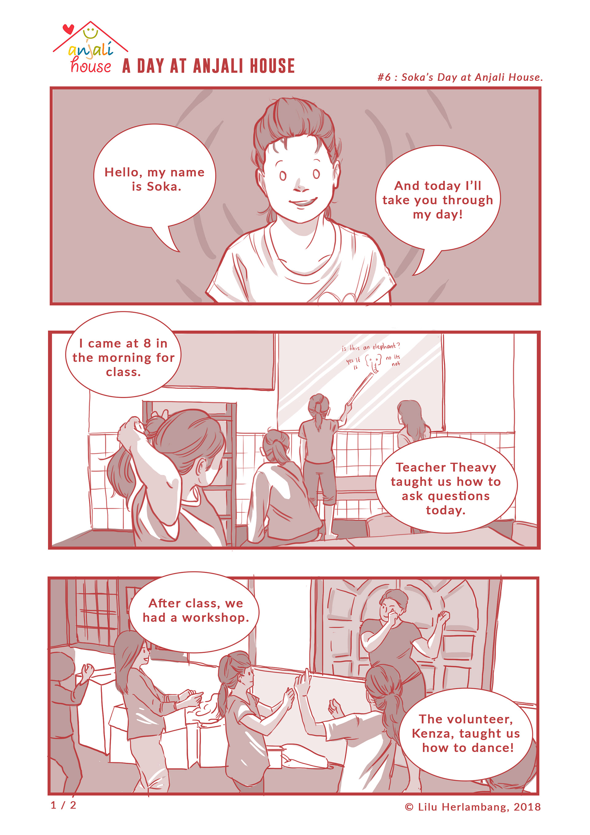 I am making a series of bi-monthly comic strips of daily things that are happening in Anjali House as my volunteer work here in Siem Reap, Cambodia. I've been working here since January and I'll be staying here until the end of June, therefore this project is an ongoing project.