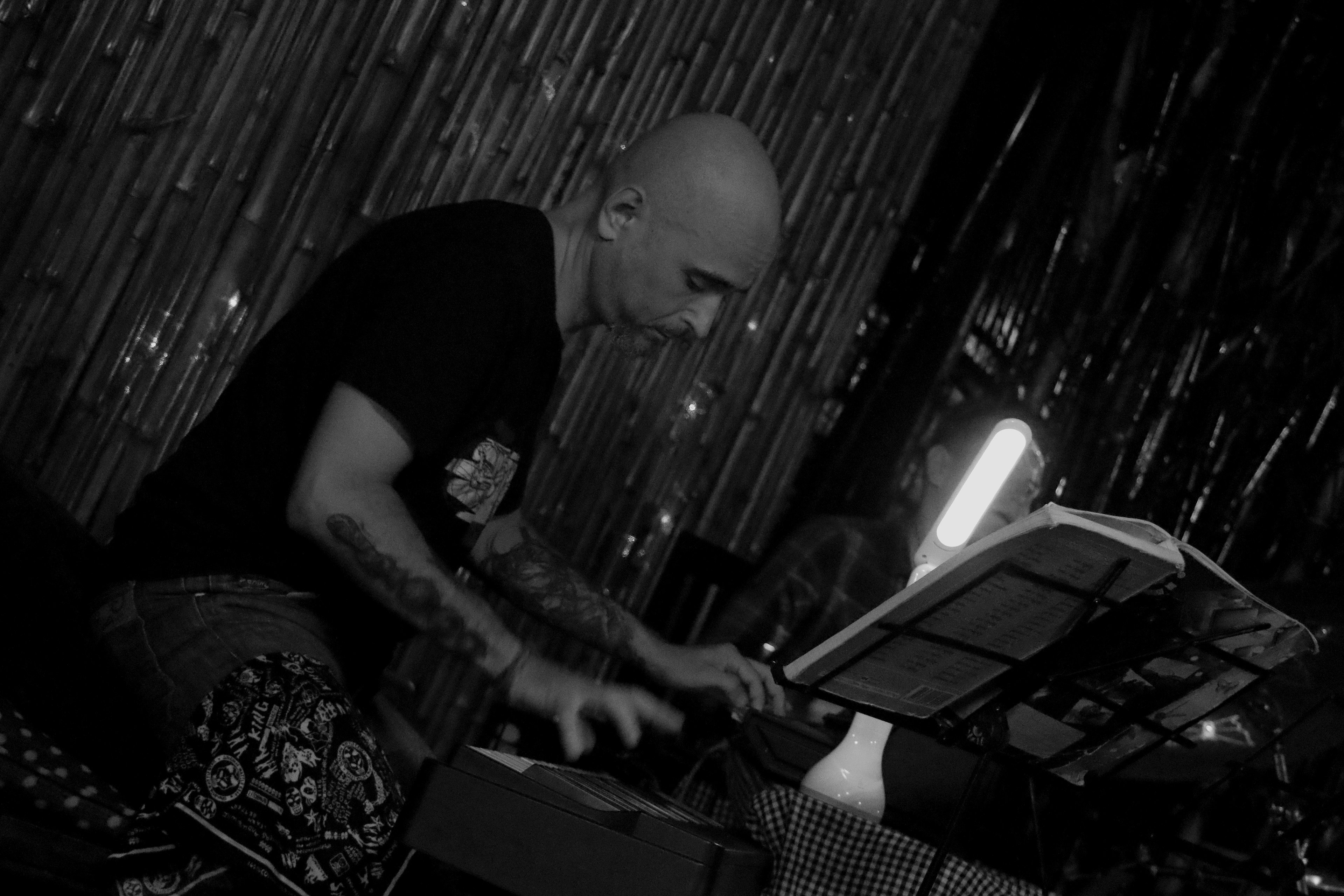 Sitting down in Siem Reap's favourite French hangout place, the Laundry Bar- where people are chatting in French, drinking wine and eating cheese; the "Brazen" Dimetrio with Some Tesla Power were playing their funky electric music mixed with psychedelic revolution and jazz rock in the middle of monsoon weather of Cambodia.